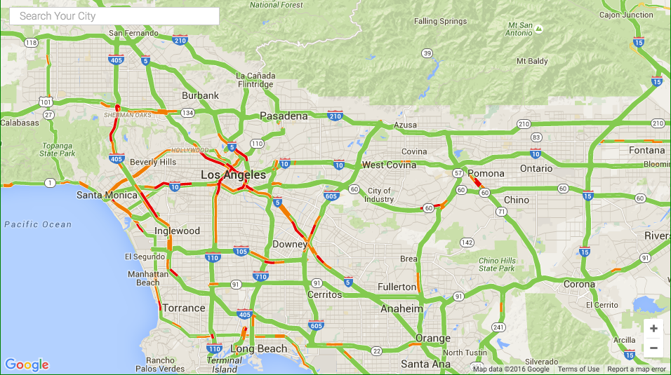 Display live traffic conditions on a map for any location.
