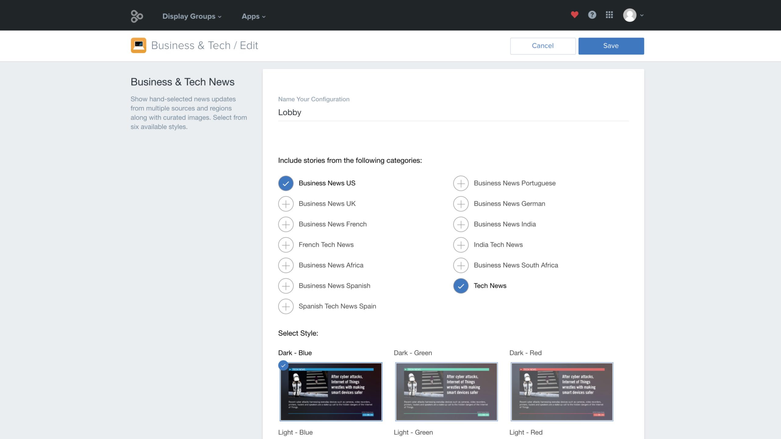 Show the latest hand-selected business and tech news headlines to keep your audience in-the-know.