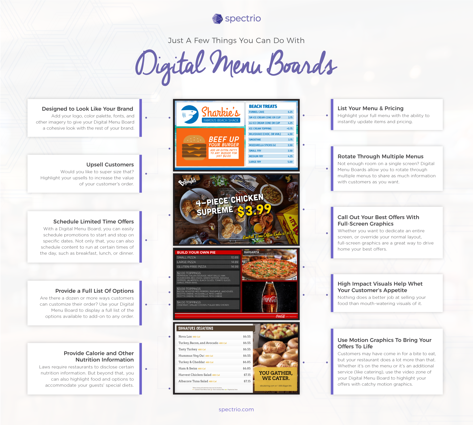 This infographic, created specifically for the QSR space, lists the many benefits of using digital menu boards in your restaurant. Learn how digital signage promotes your brand, lists menus and pricing, and provides easily interchangeable specials.