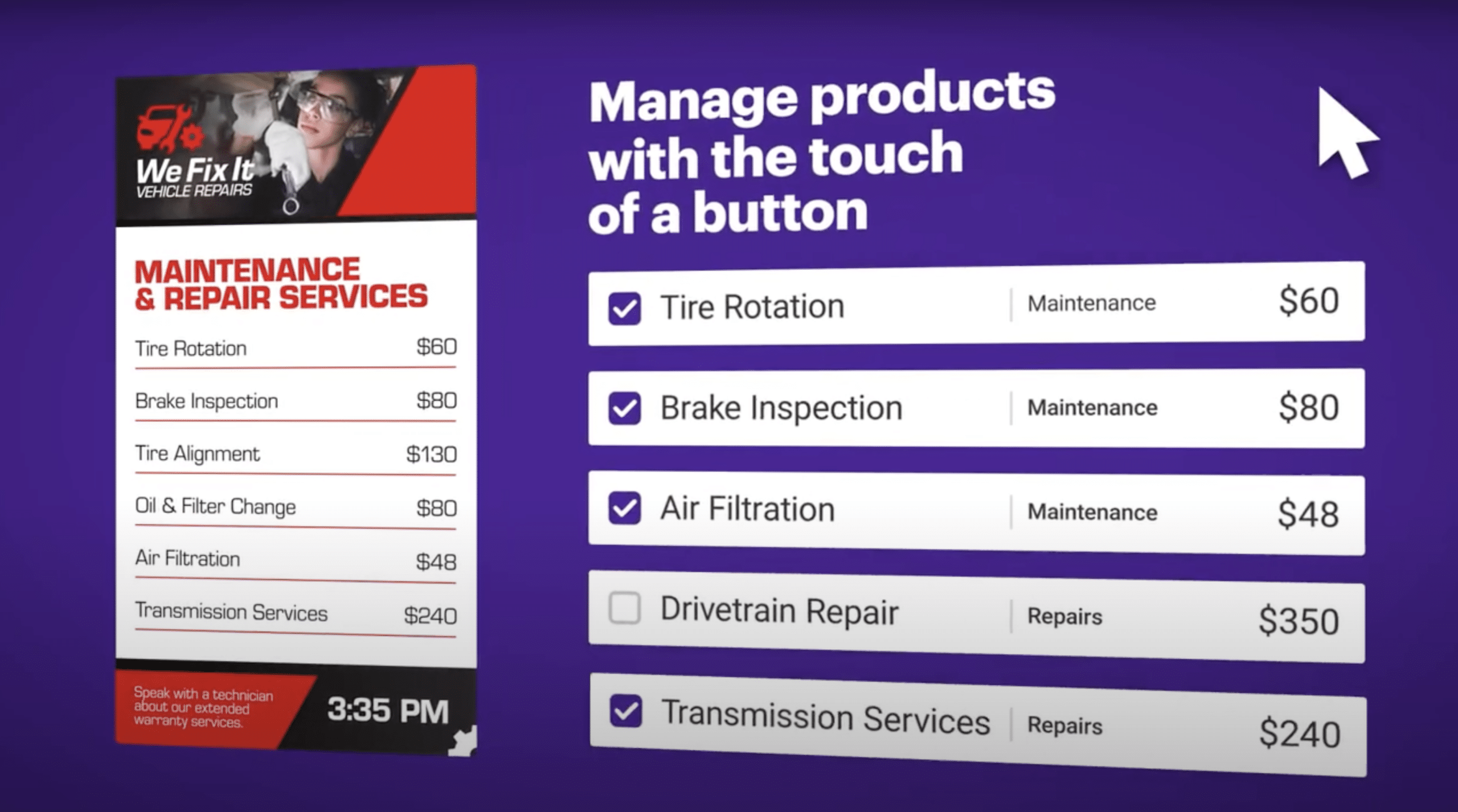 - Entertain customers with engaging content and new promotions while they wait for services to be completed.