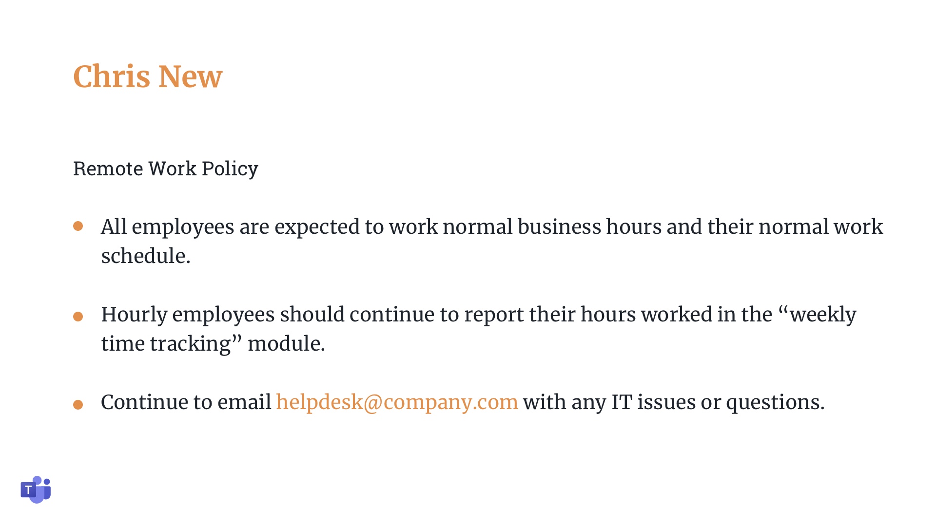 The Microsoft Teams app allows you to display a live feed of Teams channel messages on your digital screens. Manage posts from the Spectrio dashboard, then see messages appear on your screens in real-time.