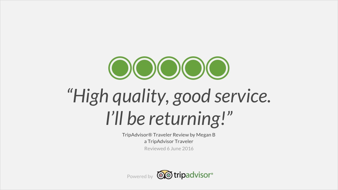 With the TripAdvisor app, you can show off your business’ stellar reputation by displaying recent positive reviews and your overall star rating. Simply enter your TripAdvisor ID within the Spectrio Dashboard.