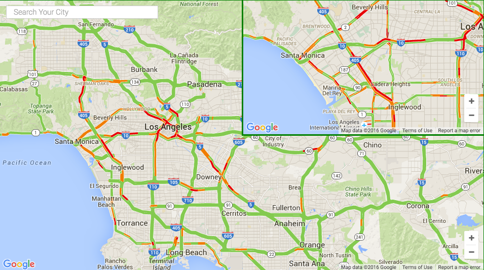 With the Split View feature, you can show traffic conditions with several different zoom levels or locations simultaneously.