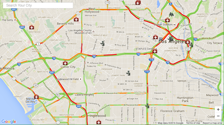 Display live traffic conditions on a map for any location.
