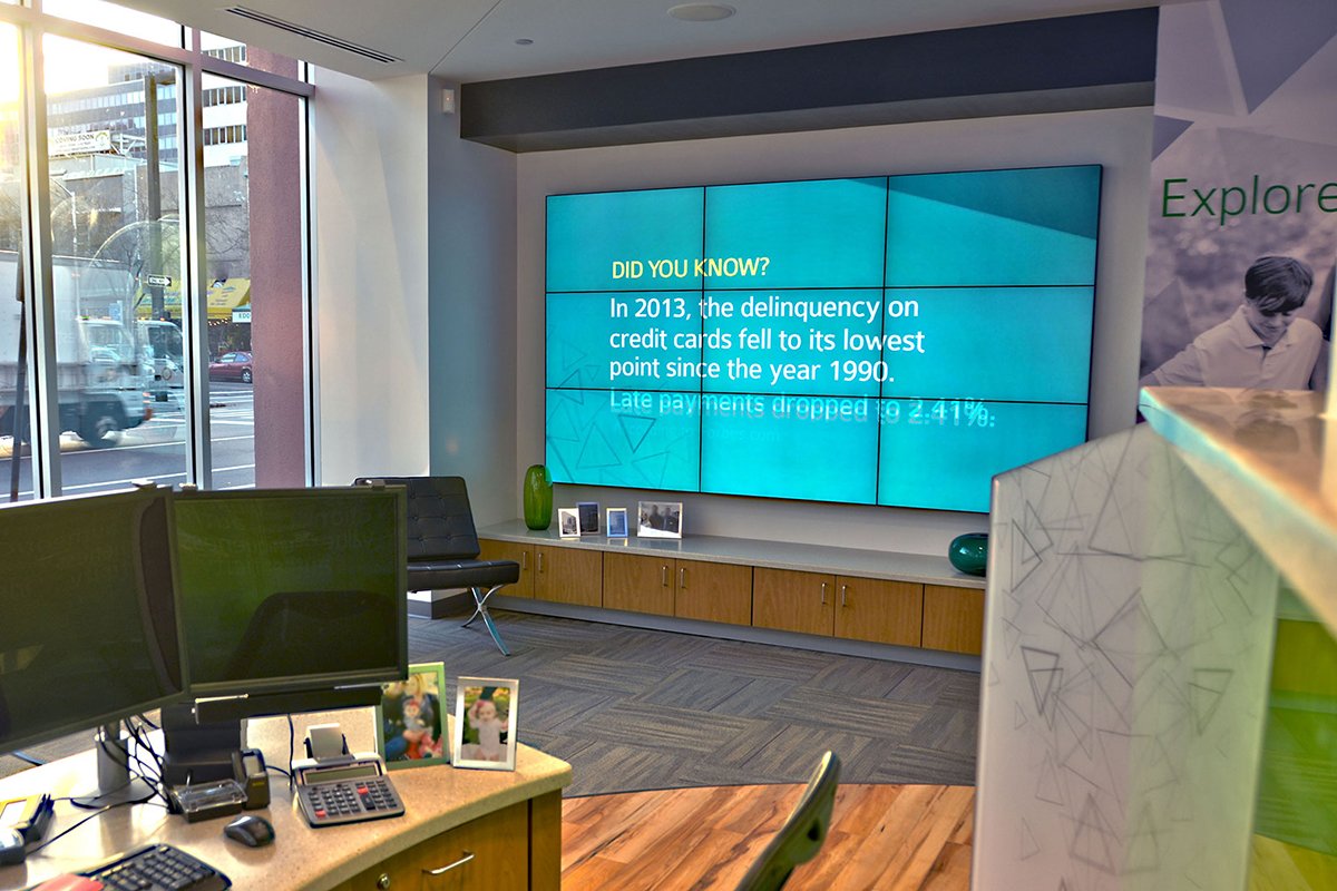 One option for financial organizations looking to upgrade their stores is the use of video walls. These office display features are dynamic and flexible, making it easy for different branches to change their displays as needed.